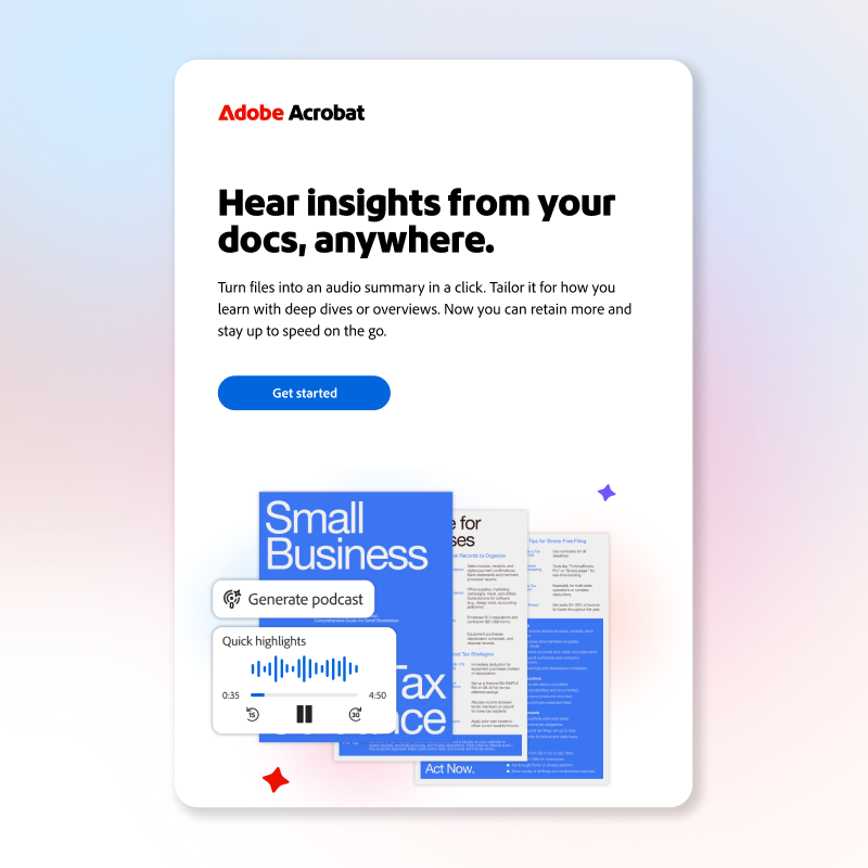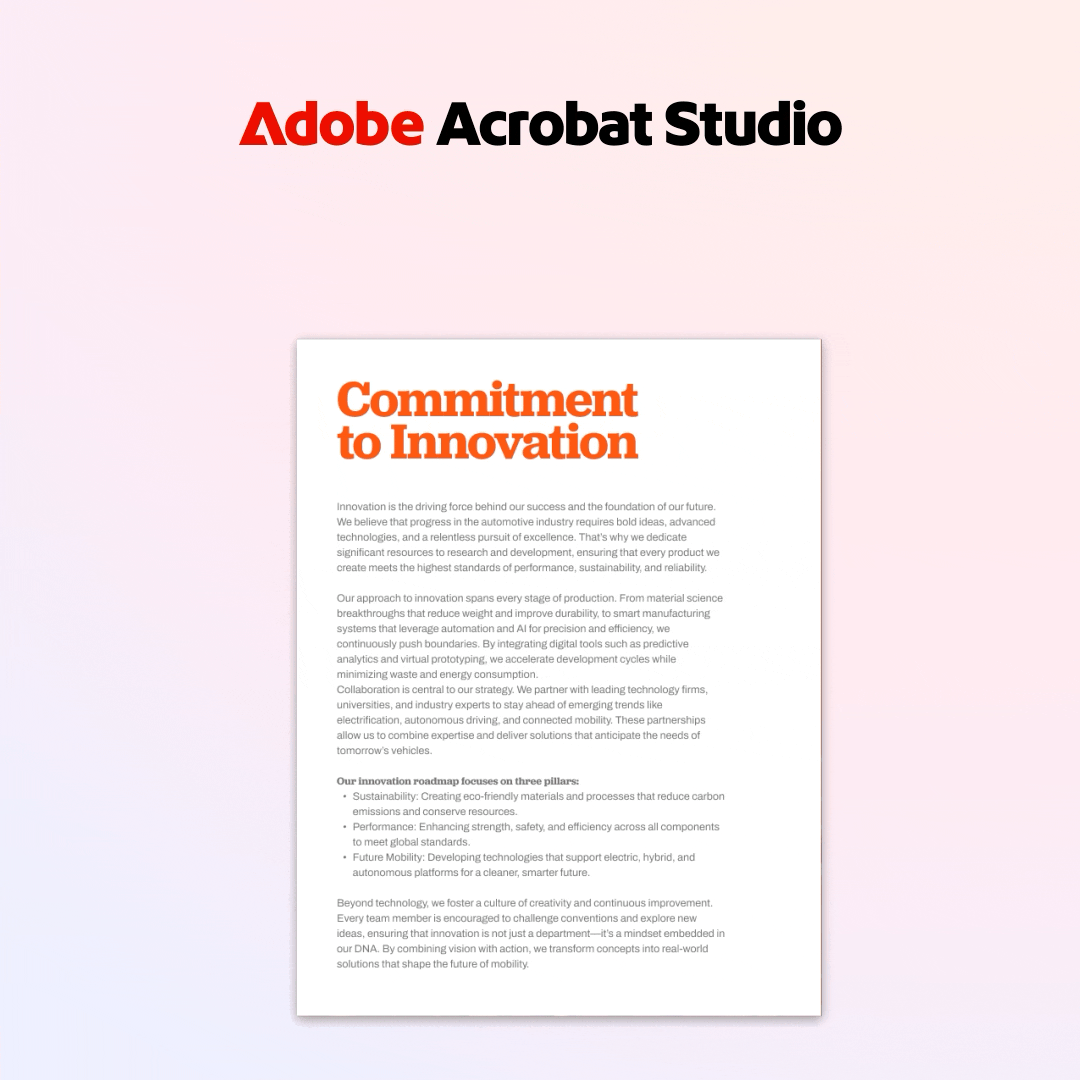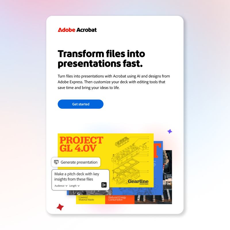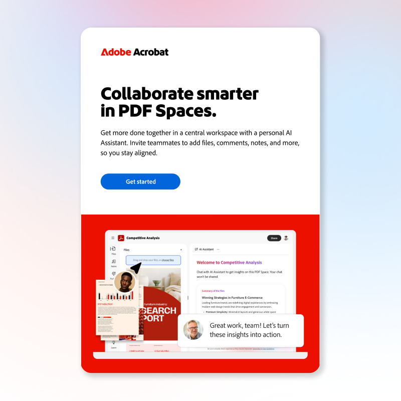 To help tell a cohesive product story across the campaign, we began first with a single hero video. The Acrobat Sizzle became our north star while developing the nearly 100 units that followed. The video established an adaptable and repeatable design and motion language that we carried throughout paid social, display, PR, and email assets.